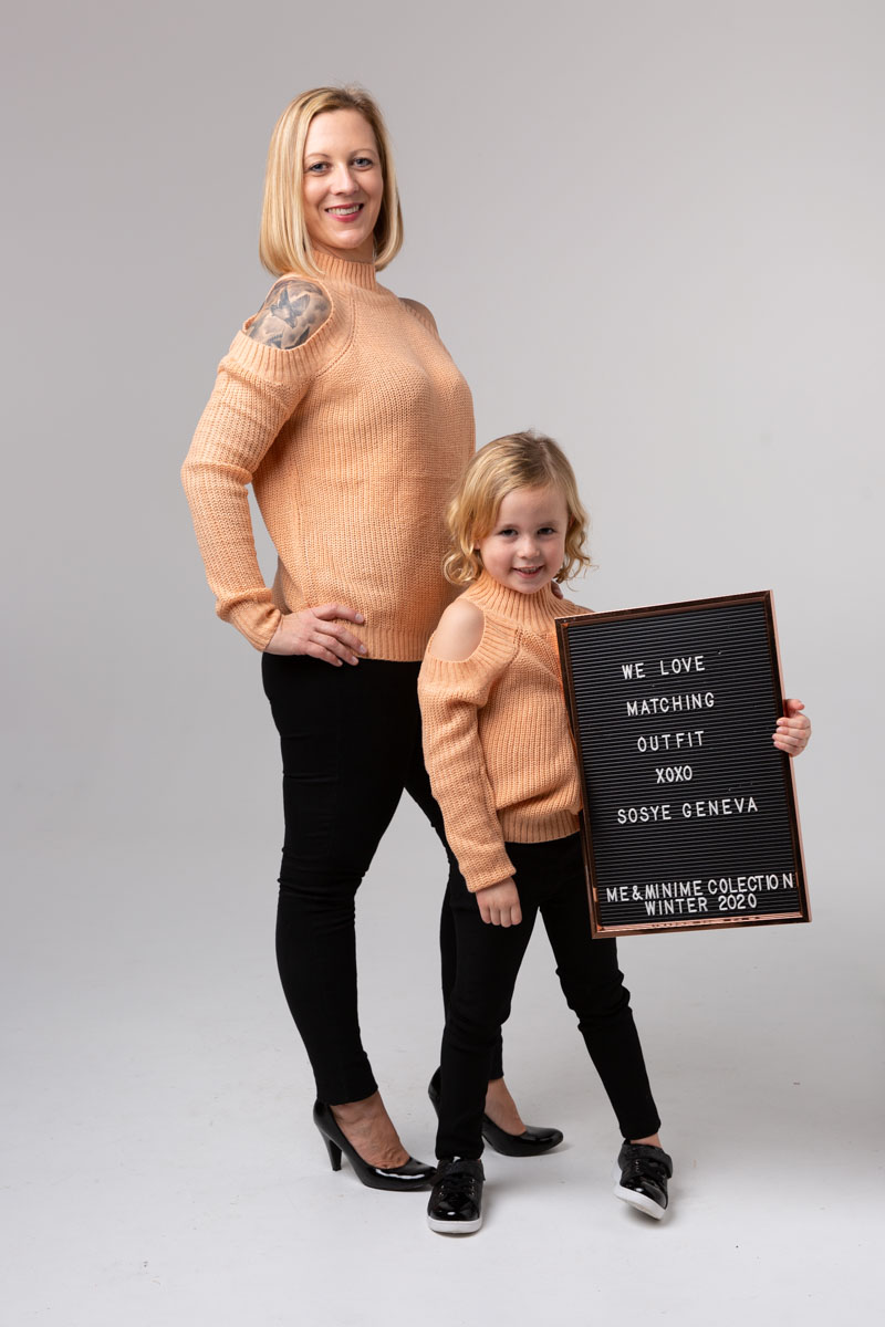Matching pullover shoulders out for mum and girl